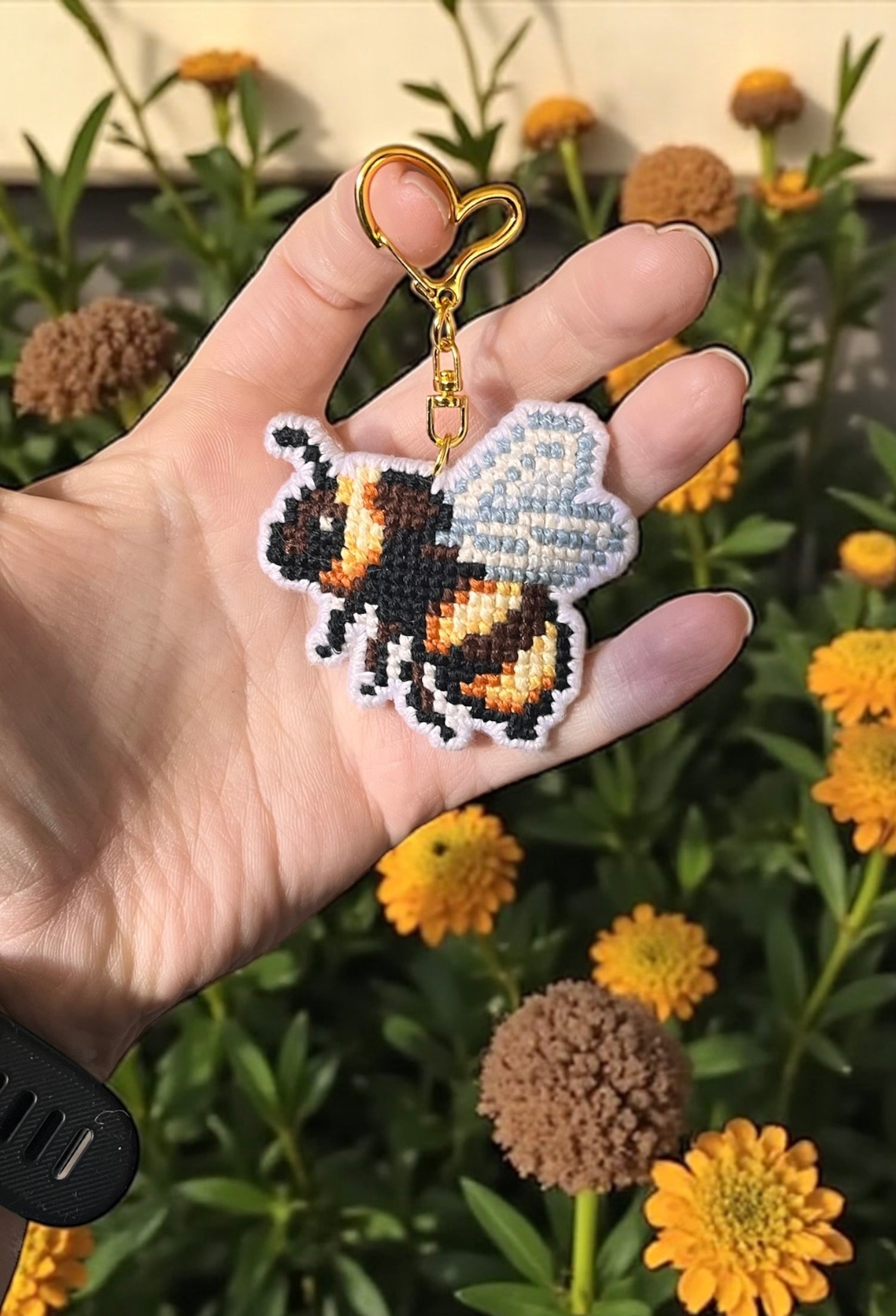 Broderad nyckelring – Bi 🐝🌼