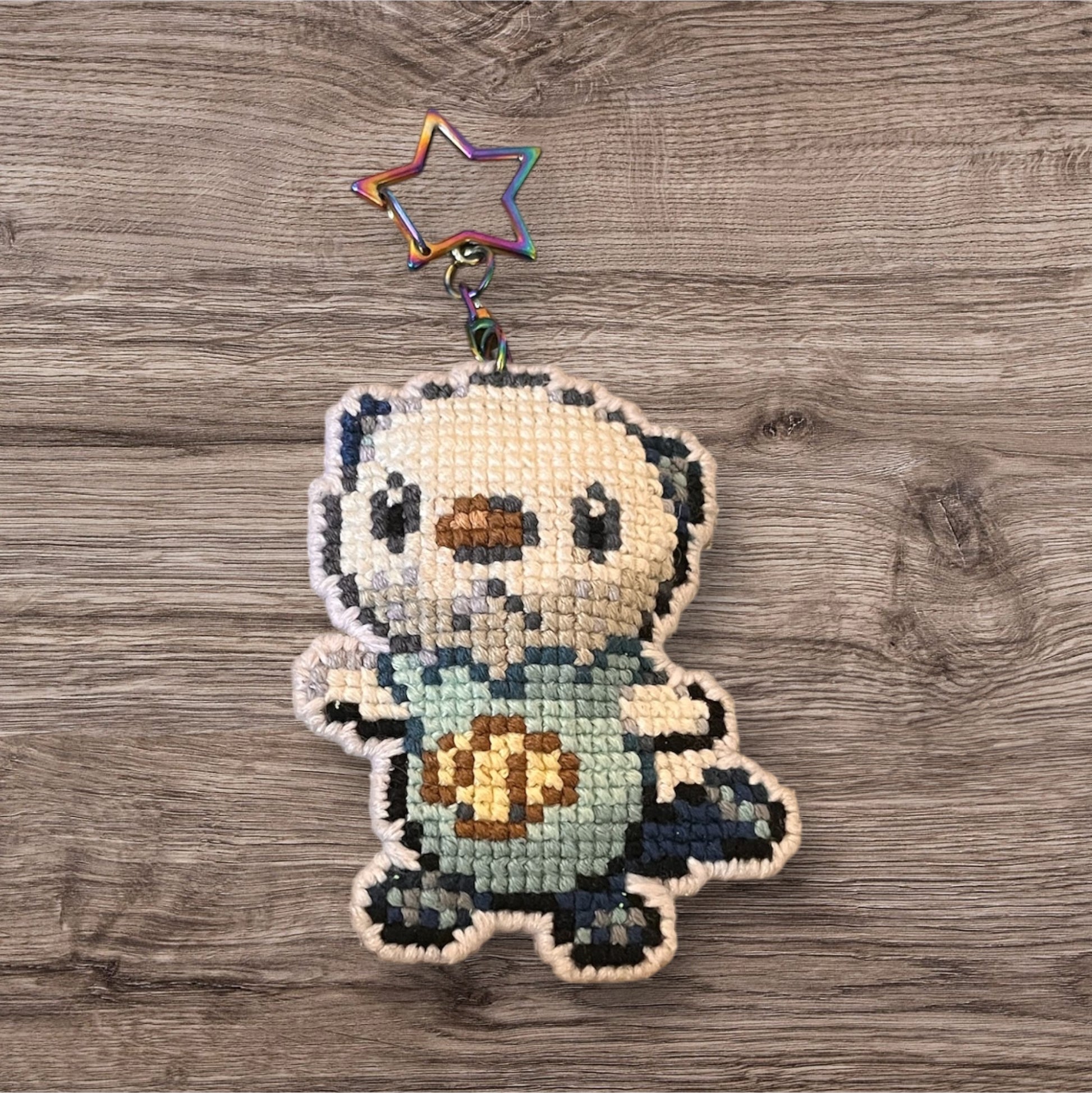 Nyckelringen är broderad med noggrant utvalda färger och fina stygn som framhäver Oshawotts uttryck. Monterad med metallring för hållbarhet och enkel användning.