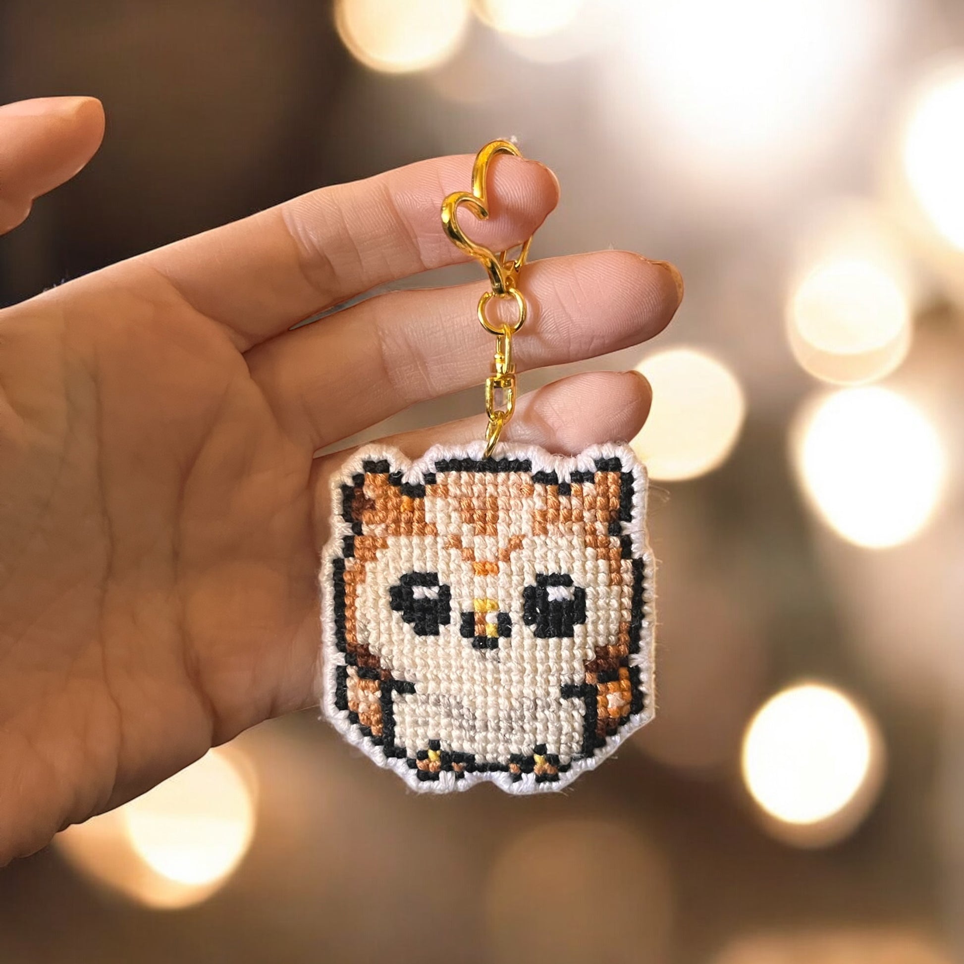 En klok liten uggla att ta med dig vart du än går! Den här handgjorda broderade nyckelringen föreställer en söt uggla med stora ögon och massor av charm – perfekt för dig som gillar natur, djur och mysiga detaljer.